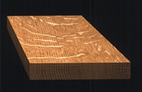 家具用の材としても、木目が美しく端正で落ち着いた表情が楽しめるオーク材の柾目板は昔から人気があります。「虎斑(とらふ)」は、そのオーク材の柾目板に現れる天然の木目模様です。柾目板の表面に浮かび上がる複雑な帯状の模様は、その名が示すようにまるで虎の縞模様を思わせ、オーク材の重厚さをさらにいっそう引き立ててくれるかのようです。